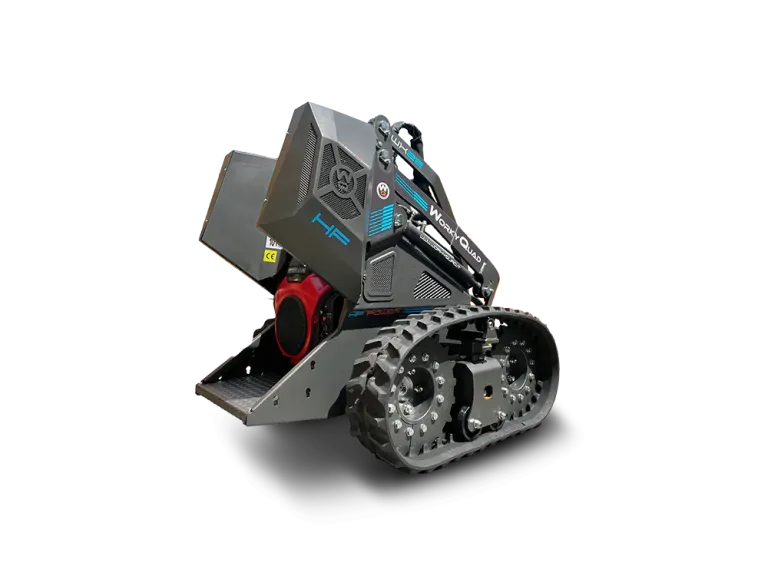 Хидростатичната верижна трансмисия осигурява отлична стабилност и сцепление върху неравни, кални или стръмни терени. Мини товарач WorkyQuad WX22 HF позволява операторът да работи безопасно и с пълен контрол, дори при тежки условия.